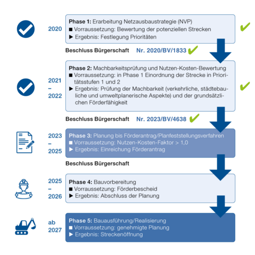 Eine erneute Verfeinerung und Konkretisierung erfolgt im Anschluss in der Entwurfs- und Genehmigungsplanung. Diese geht dann erneut zur Abstimmung in die Bürgerschaft.