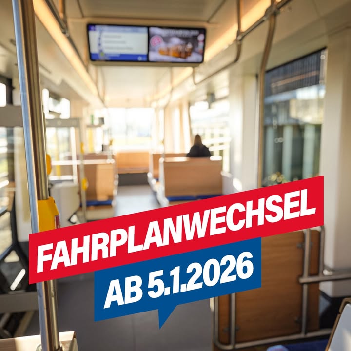 🚋 Fahrplanwechsel zum Jahresstart 2026 Ab 5. Januar 2026 gilt nach dem Ende der Weihnachtsferien unser neuer Jahresfahrplan. ✨ Die…