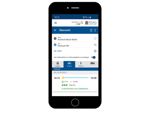 Welches Verkehrsmittel ist die ideale Wahl für meine Strecke? Die Antwort auf diese Frage finden Sie in der RSAG-Fahrplanauskunskunft! Ab sofort zeigen Ihnen unsere Online-Auskunft und die RSAG-App nicht nur die Verbindung mit Bus, Bahn oder Fähre an, sondern ergänzen als Alternative noch den Rad- und Fußweg sowie die Taxistrecke.