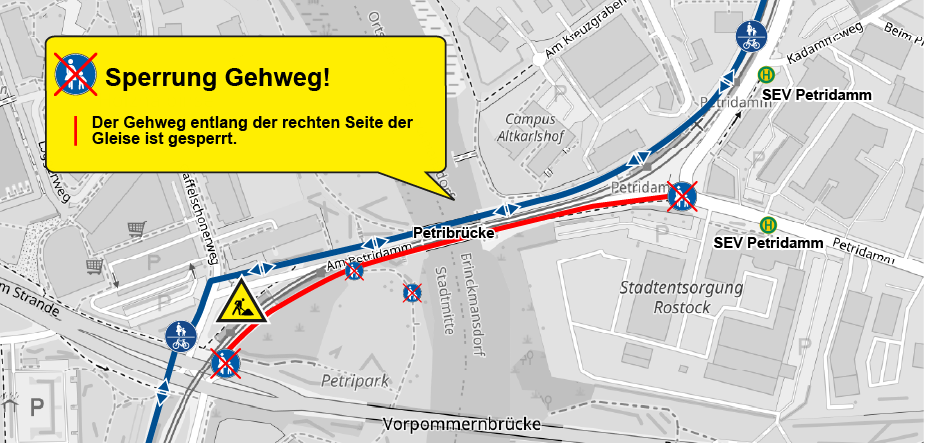 Auf Grund der Baumaßnahme ist die Petribrücke halbseitig gesperrt. Mehr Informationen entnehmen Sie der folgenden Karte.