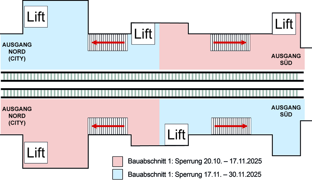 Vom 01.12. – 05.12.2025 werden Restarbeiten auf den Bahnsteigen durchgeführt.