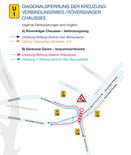 U1 — Diagonalsperrung der Kreuzung Verbindungsweg/ Rövershäger Chaussee