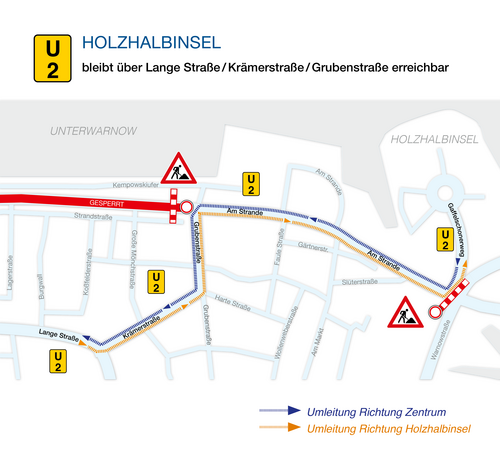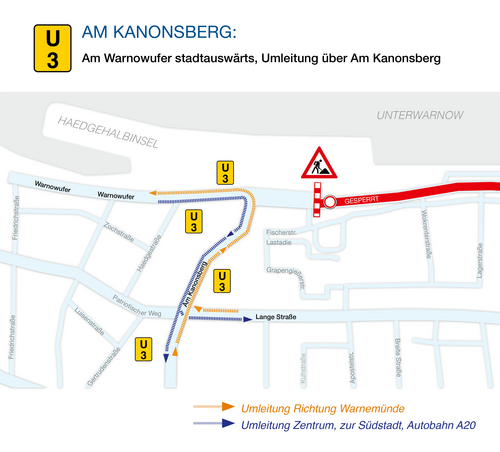 Am Warnowufer stadtauswärts Umleitung über Am Kanonsberg