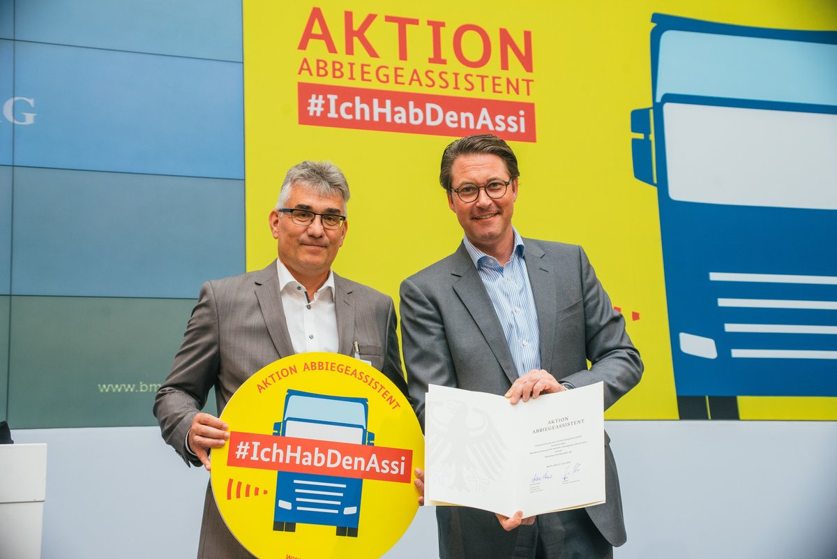 Bundesminister Andreas Scheuer hat in dieser Woche 68 neue Sicherheitspartner seiner „Aktion Abbiegeassistent“ ernannt. Neben Unternehmen aus ganz Deutschland beteiligen sich erstmals auch Landkreise, Städte und kommunale Betriebe wie die RSAG: Die Sicherheitspartner haben sich verpflichtet, noch vor dem verbindlichen Einführungsdatum auf EU-Ebene ihren Fuhrpark mit Abbiegeassistenten aus- bzw. nachzurüsten.
