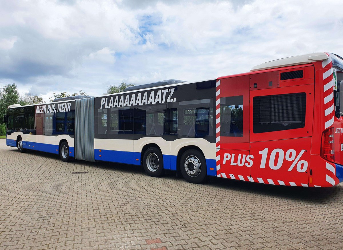 Rostock erlebt in Kürze eine Premiere: Fünf neue überlange Diesel-Busse der Marke Mercedes Benz CapaCity verstärken ab sofort den Busfuhrpark der Rostocker Straßenbahn AG. Bei diesem Bus handelt es sich um einen vierachsigen, niederflurigen Gelenkbus mit einer Länge von knapp 20 Metern gegenüber 18 Metern bei herkömmlichen Gelenkbussen.