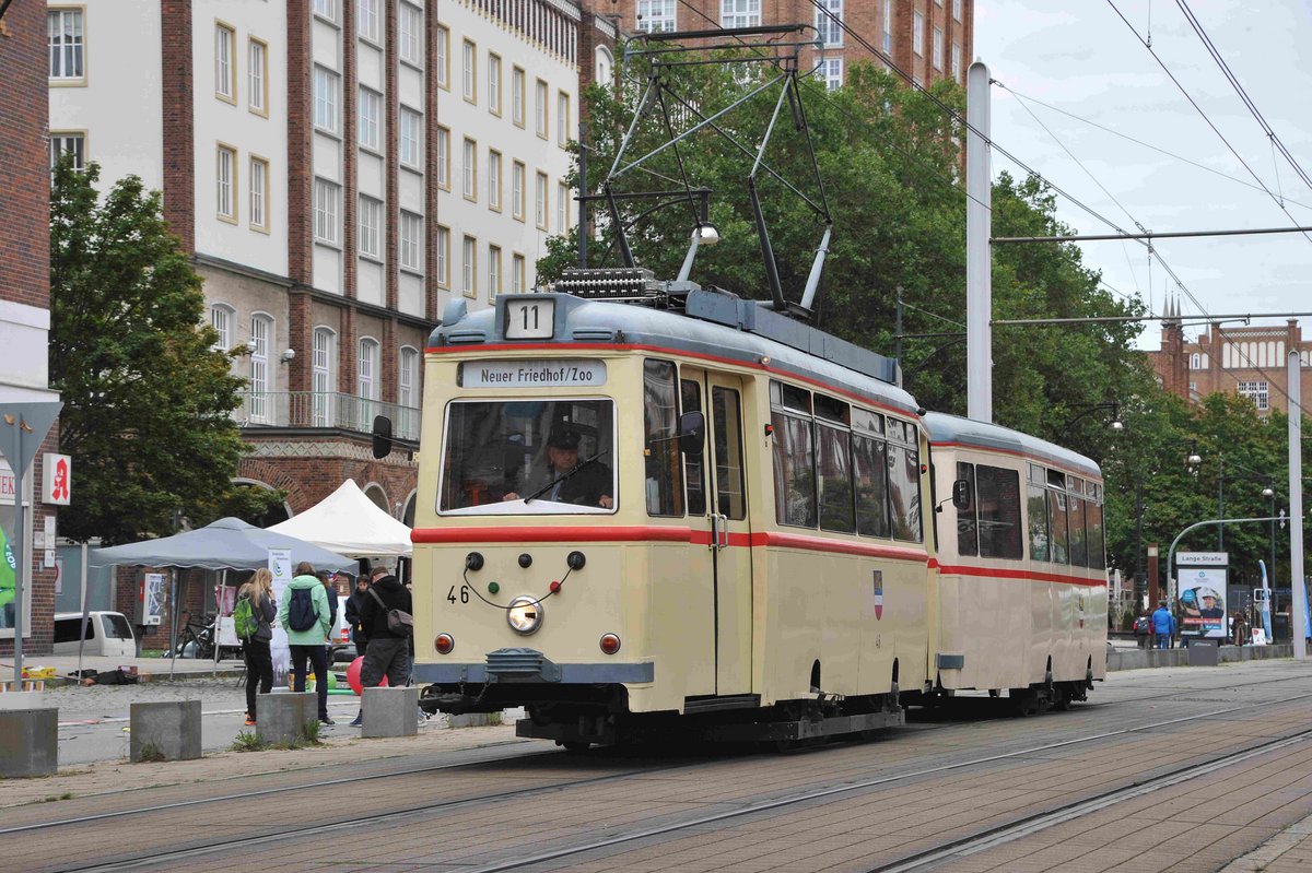 Vom 3. bis 24. September 2023 bieten die Rostocker Nahverkehrsfreunde jeden Sonntag von circa 10:30 Uhr bis 17:00 Uhr Fahrten mit den Traditionsstraßenbahnen und dem historischem Kraftomnibus Ikarus 66 an.