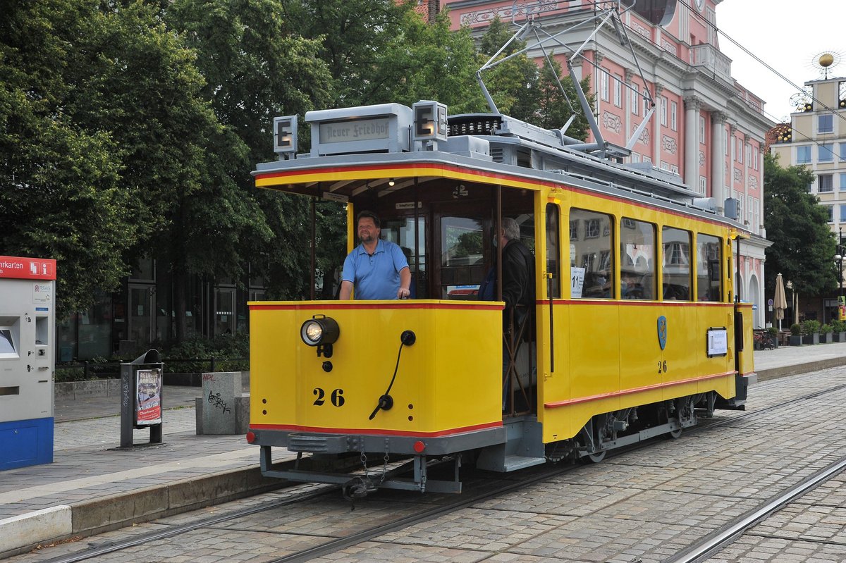 Die Traditionsstraßenbahnen fahren vom Neuen Friedhof über den Doberaner Platz und Steintor zum Dierkower Kreuz und wieder zurück zum Neuen Friedhof.